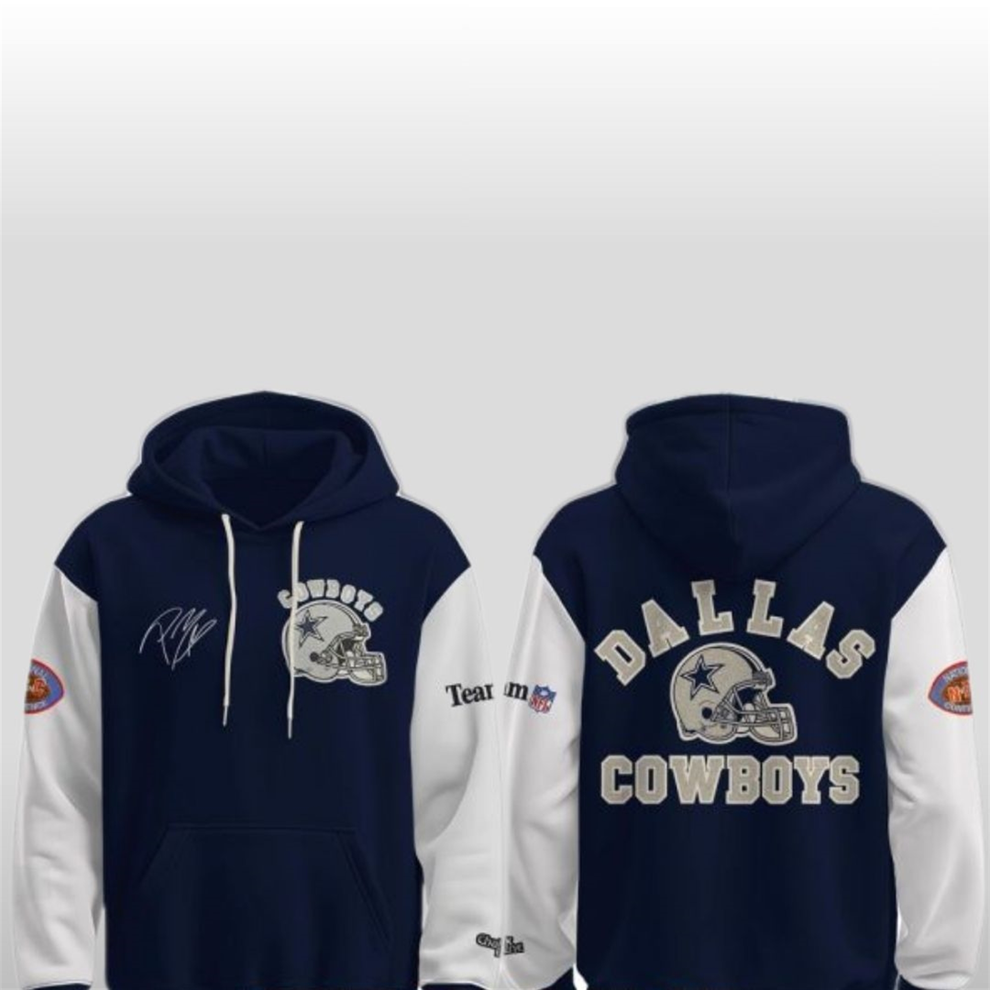 Step into the spotlight with the Dallas Cowboys x Malone Halftime Kickoff 2025 Hoodie, the definitive piece for any dedicated fan. This stunning navy blue and white varsity-style pullover features contrast sleeves for a classic, bold look.