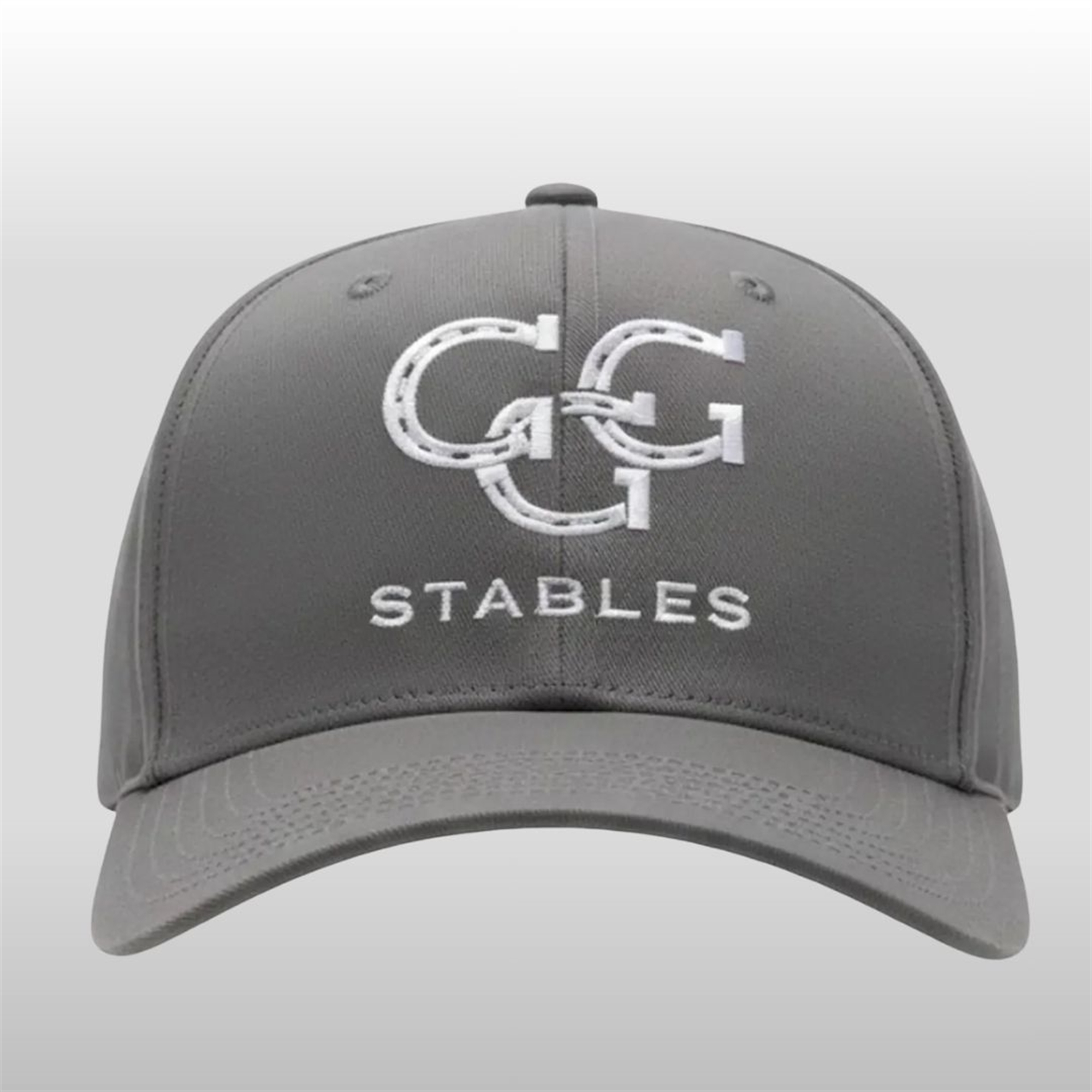 Unveil your racing spirit with the signature Dave Portnoy Go Go Greys Stables Hat, a standout piece of headwear that captures the essence of this vibrant racing venture. This premium, structured, grey baseball cap features the bold and distinctive “GG” logo, intricately formed by two interlocking white horseshoes—a powerful symbol of luck and equestrian dedication. Below this eye-catching graphic, the word “STABLES” is embroidered in crisp white lettering. The clean grey color and sharp design make this Go Go Greys Racing cap the ultimate statement accessory, perfect for the track, tailgates, or everyday wear.