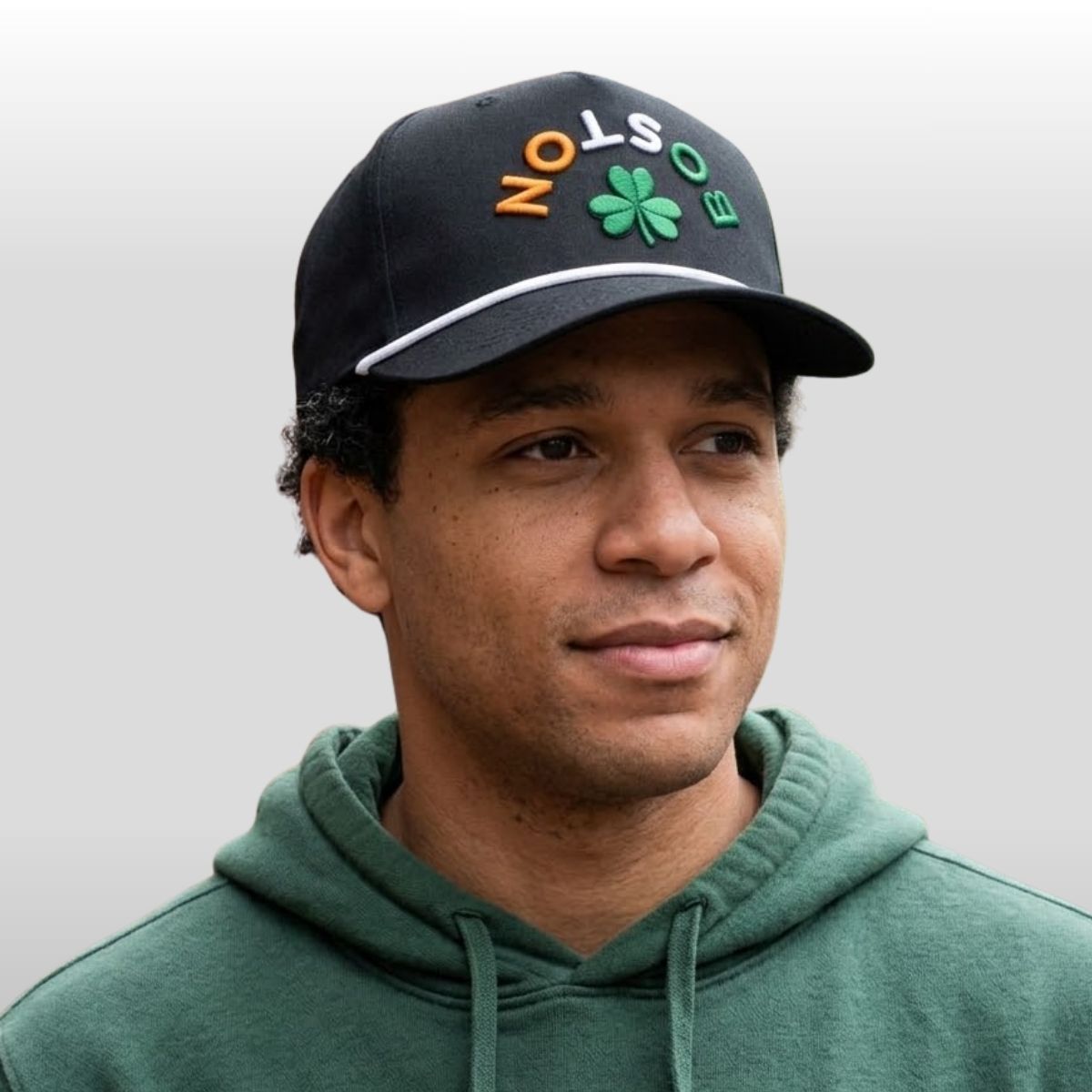 The Drake Maye Boston Shamrock Hat has quickly become a cornerstone of contemporary street fashion, blending the gritty charm of a historic city with a clean, modern aesthetic. This headwear piece moves away from the typical crowded graphics often found in local apparel, opting instead for a minimalist yet bold design. Featuring a structured crown and a crisp rope detail across the visor, the hat captures a vintage “sideline” feel while remaining firmly rooted in today’s trends. The centerpiece—a vibrant green four-leaf clover—sits beneath an arched “BOSTON” wordmark, rendered in a striking palette of orange, white, and green that pays homage to the heritage of the area without saying a word.