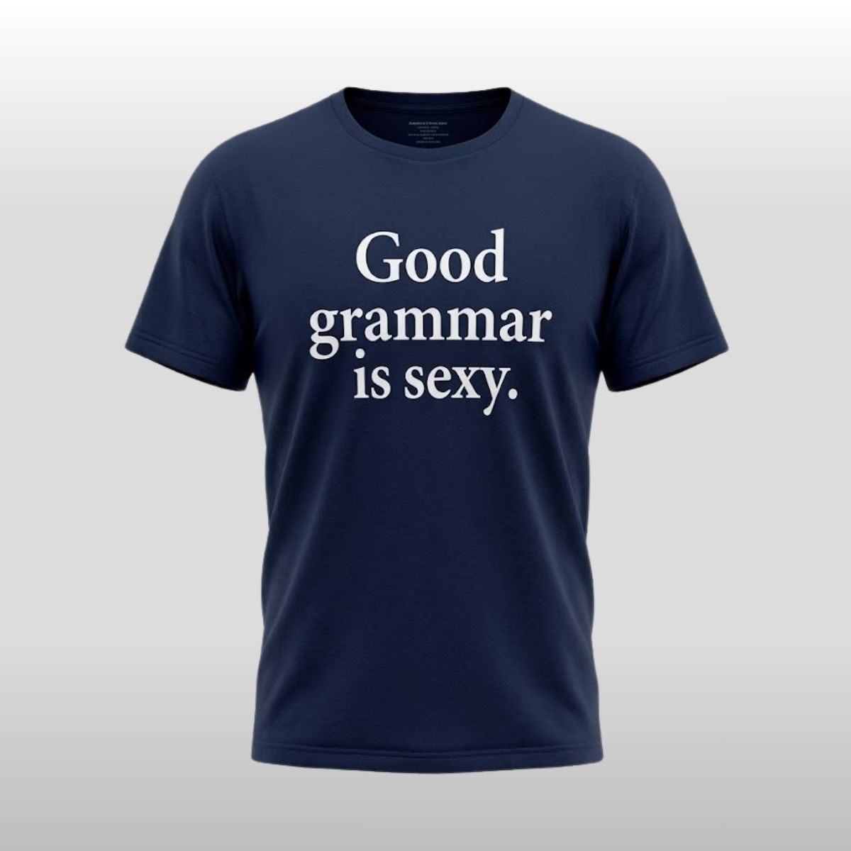 Modern fashion is increasingly moving toward “word-wear” that reflects the personality and values of the wearer. This shirt does exactly that by taking a lighthearted stand for linguistic precision. While many graphic tees rely on loud logos or complex graphics, this design uses high-contrast typography to make its point. The deep navy backdrop provides a sophisticated foundation, ensuring that the white lettering remains sharp and legible from a distance. It is an ideal choice for those who appreciate the intersection of pop culture and clever messaging, offering a way to channel a specific celebrity vibe without being overly flashy.