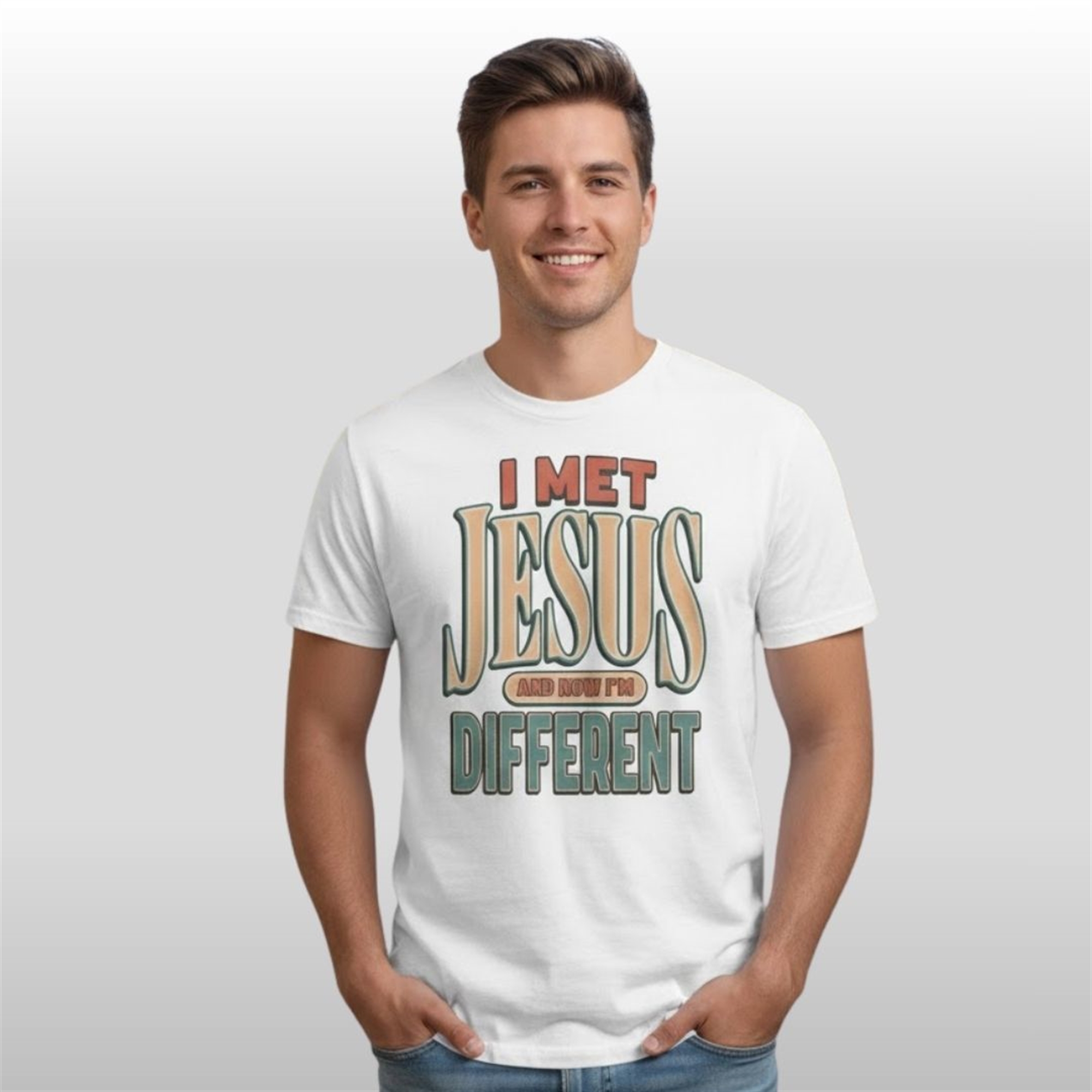 Introducing the JT Tuimoloau I Met Jesus And Now Im Different Shirt, a must-have for those who embrace their Christian identity and celebrate a life-altering encounter with faith. This high-quality, comfortable white tee features a striking graphic design with the impactful phrase: “I MET JESUS AND NOW I’M DIFFERENT.” The text is rendered in a vintage-inspired, multi-colored font—combining a warm red/orange for the smaller text and a soft green/teal for the word “DIFFERENT“—making a bold, yet aesthetically pleasing statement.