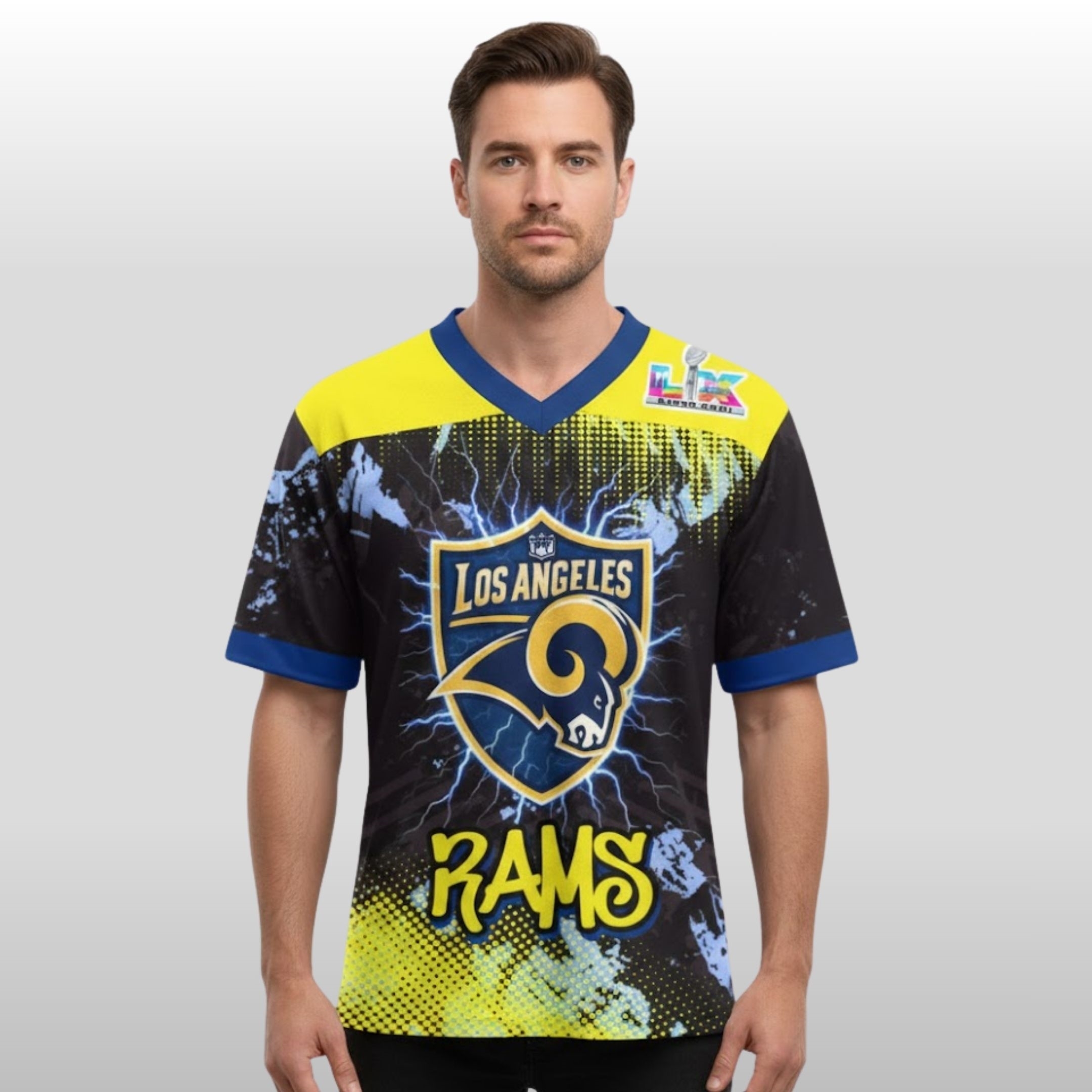 Elevate your game-day wardrobe with a piece that captures the electric energy of Los Angeles. The Los Angeles Rams 2026 Bowl LIX Rams House Football Jersey is more than just a piece of sports apparel; it is a high-octane tribute to the “Rams House” culture and the relentless drive of the city’s favorite team.