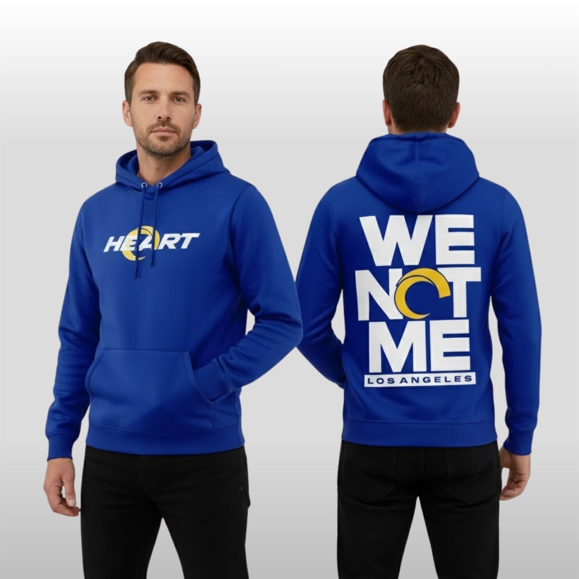 The “We Not Me” mantra became the rallying cry that led Los Angeles to the pinnacle of football glory. This hoodie celebrates that championship DNA. The design has gained traction among die-hard supporters and fashion-forward Angelenos for its “Gridiron Minimalist” look—pairing the classic Royal Blue and Sol Gold palette with clean, impactful typography. It isn’t just a piece of merchandise; it’s a symbol of your commitment to the team.
