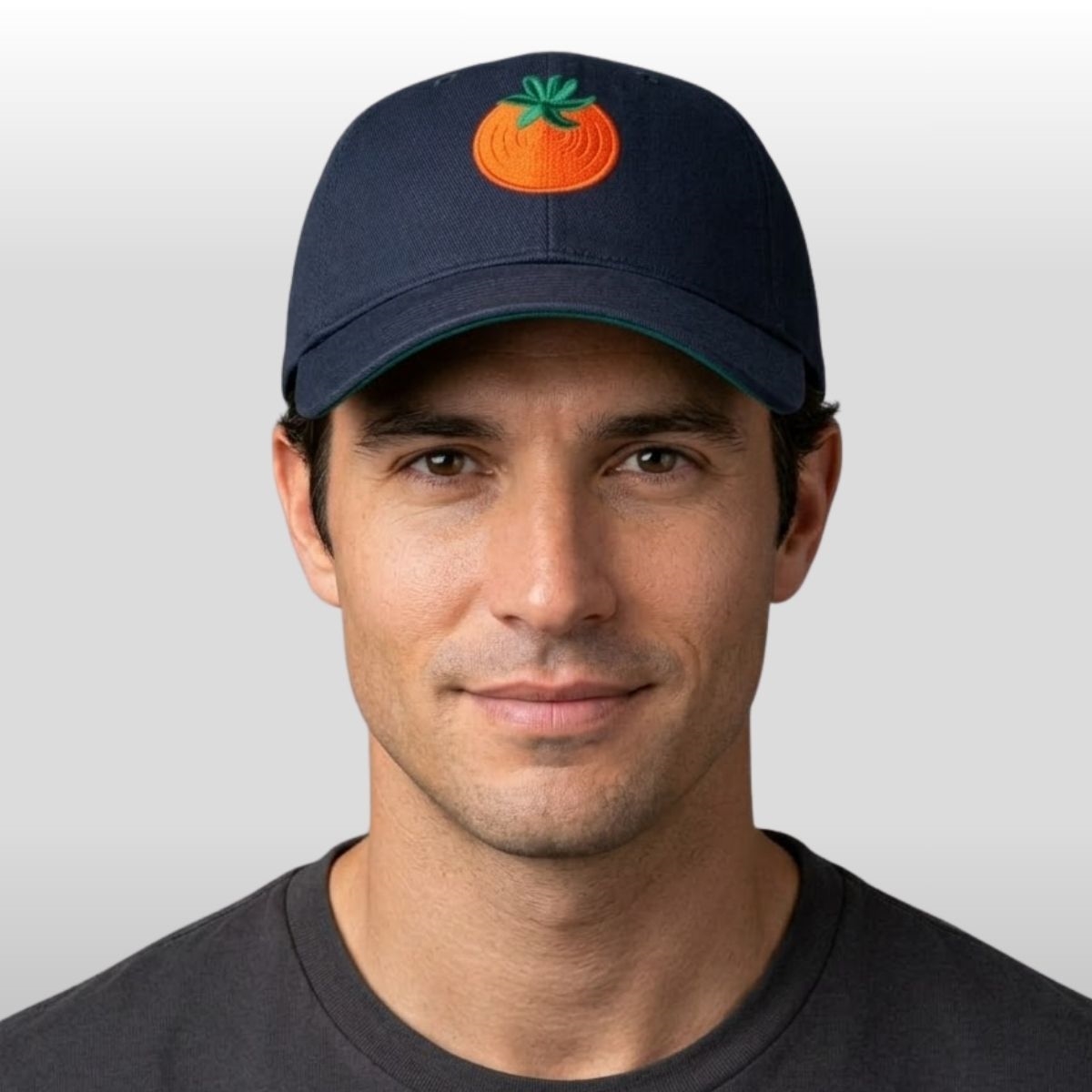 The visual appeal of this accessory lies in its striking simplicity and bold color contrast. Built on a classic navy blue canvas, the structured crown provides a timeless silhouette that fits comfortably into any casual wardrobe. The centerpiece is a vibrant, embroidered tomato, rendered in a rich shade of orange-red with a bright green stem. This Luke‘s minimalist graphic offers a refreshing departure from busy logos and heavy branding, focusing instead on a clean, organic icon that feels both vintage and modern at the same time. The high-quality stitching ensures the fruit pops against the dark fabric, creating a focal point that is instantly recognizable without being over-the-top.