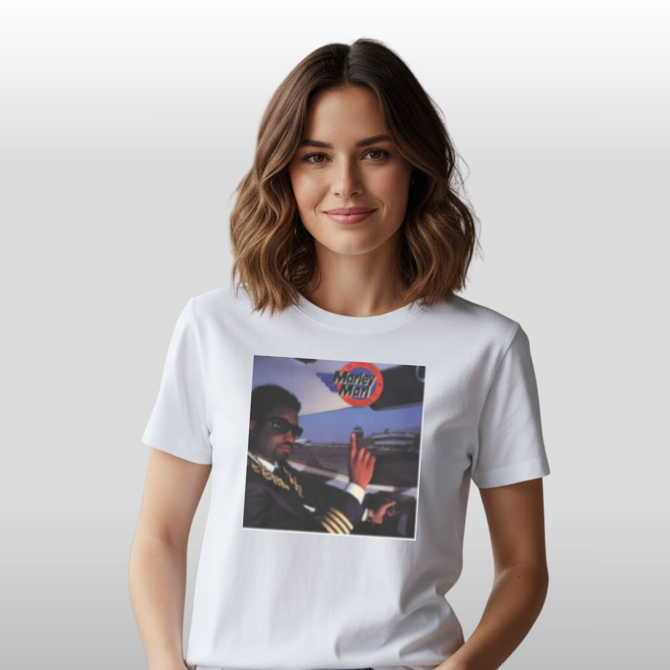 - The Pilot of Hip-Hop: The graphic features the legendary imagery of Marley Marl in the cockpit—a perfect metaphor for the man who steered the direction of rap music. This “Captain of the Boards” look resonates with those who appreciate the roots of the genre.