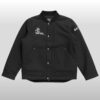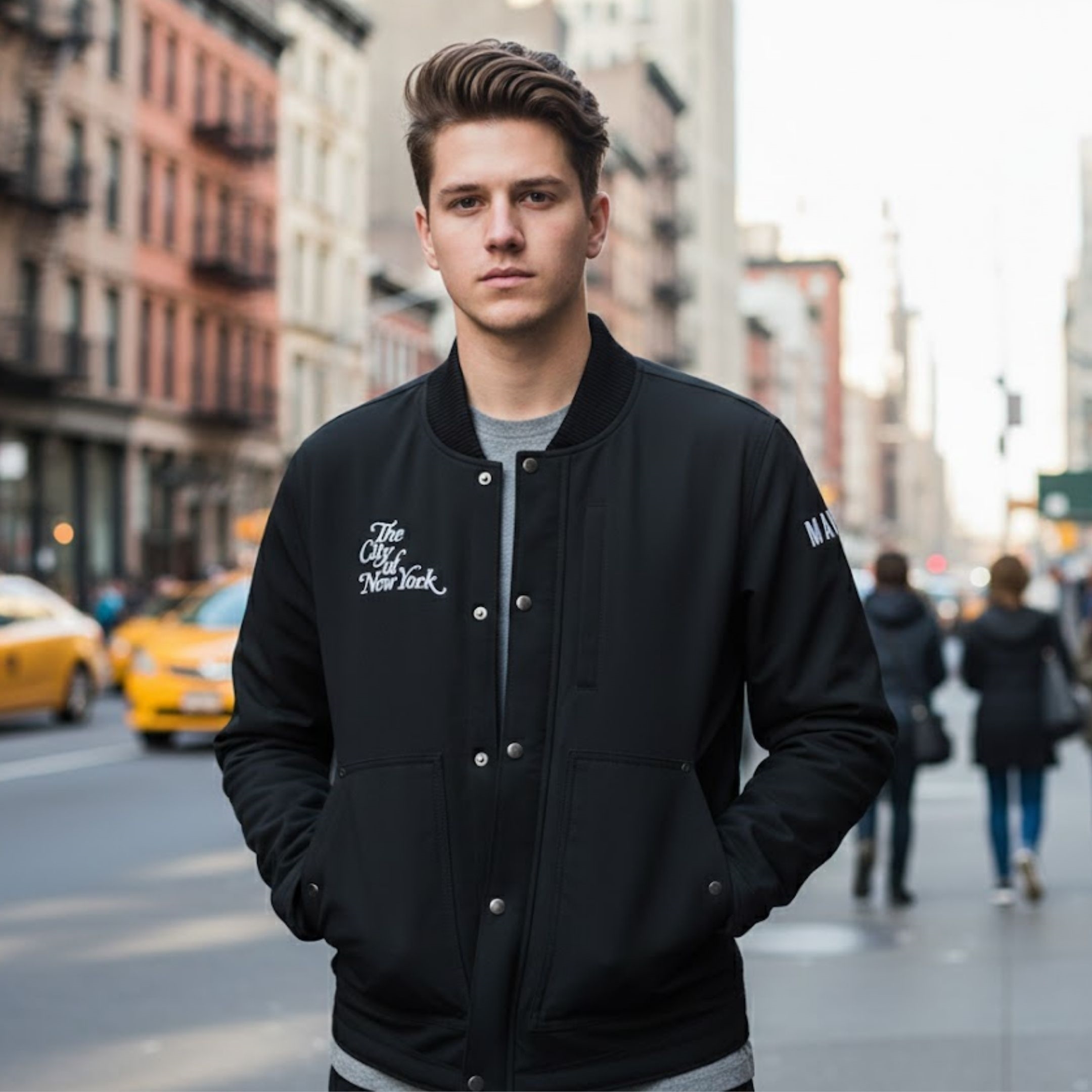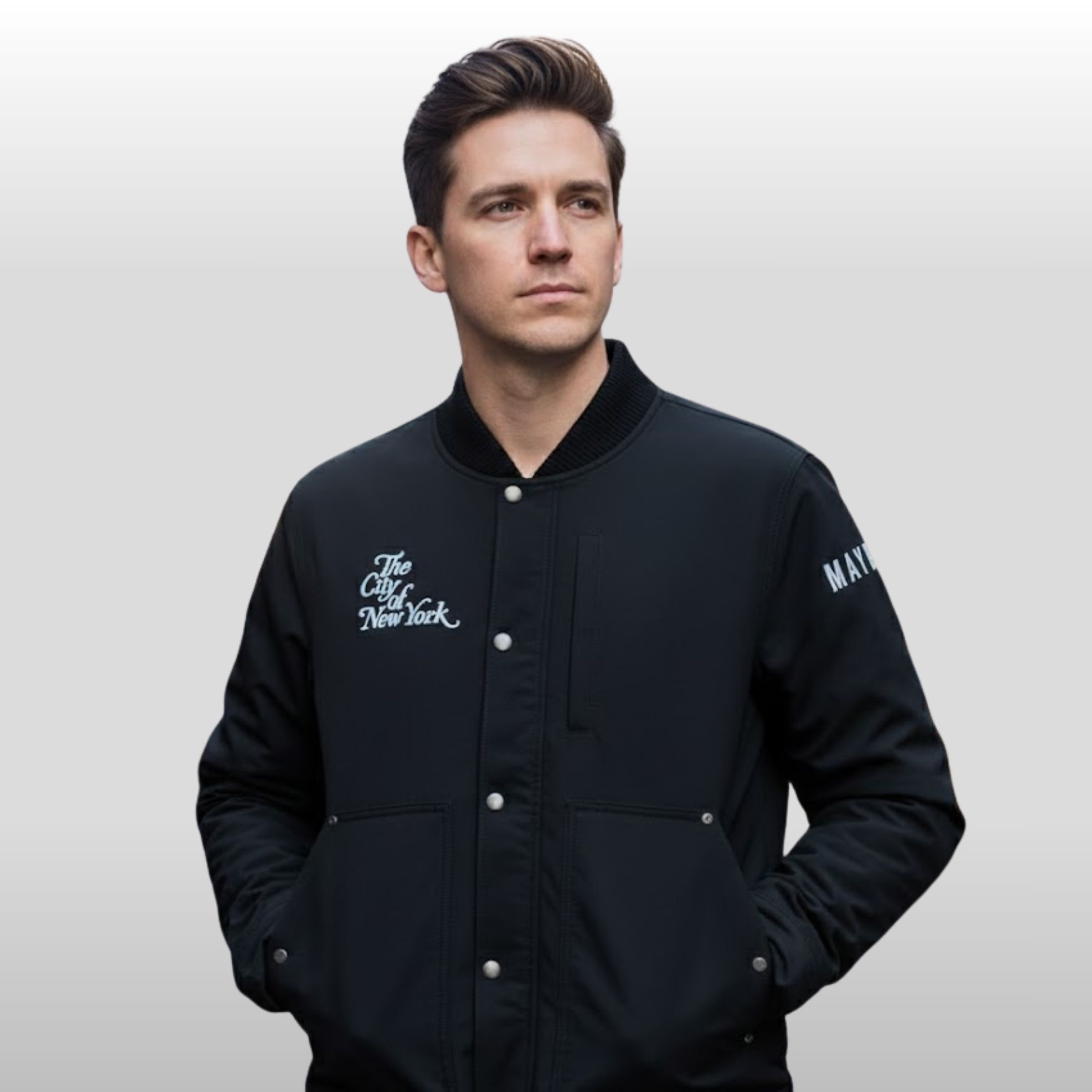 The jacket is a masterclass in utility-driven fashion. It breaks away from typical political merchandise to embrace a rugged, workwear-inspired aesthetic. The front features the elegant, script-style “The City of New York” embroidery, providing a classic contrast against the sleek, midnight-black fabric. This design choice pays homage to the city’s rich history while looking forward to a new era of leadership.