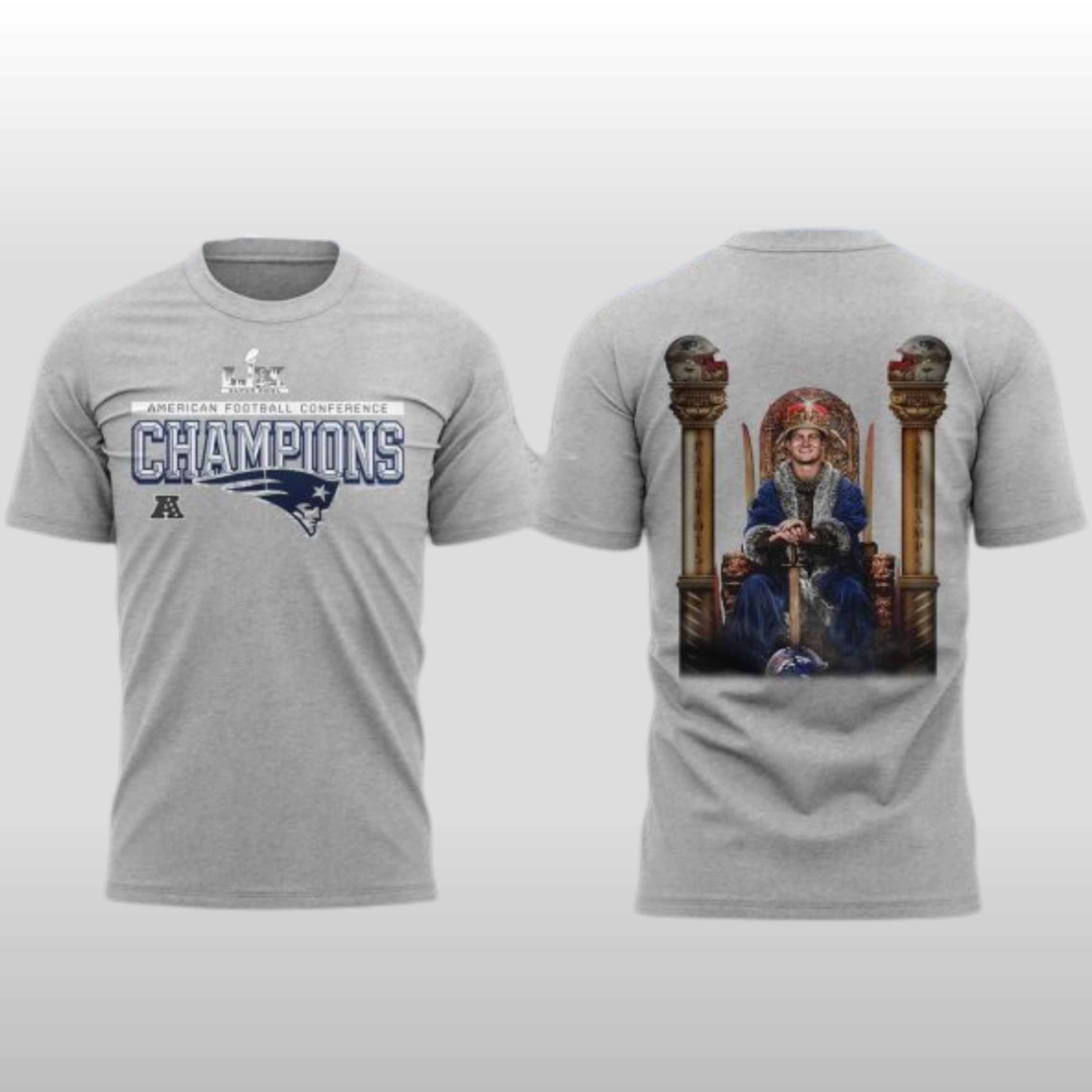 This hoodie is a masterclass in sports storytelling. Moving beyond standard fan gear, it embraces a cinematic “Return of the King” theme that centers on the rise of Drake Maye. The front features the bold “CHAMPIONS” typography paired with the iconic Flying Elvis logo, set against a versatile heather grey backdrop. It’s a clean, sharp look that balances classic pride with a modern aesthetic.