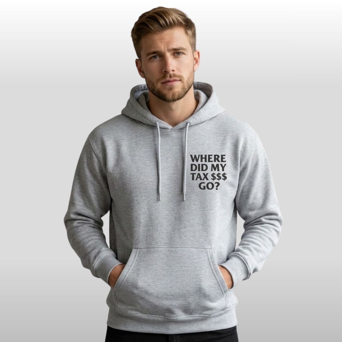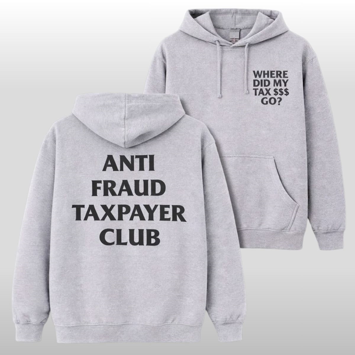 The design is intentionally minimalist and high-impact. Featuring a clean, athletic grey heather base, the shirt sports a dual-sided message. The front chest poses the essential question: “WHERE DID MY TAX $$$ GO?” while the back features the iconic “ANTI FRAUD TAXPAYER CLUB” block lettering. It’s a look that balances “streetwear cool” with a serious civic message, making it perfect for anyone who believes that questioning the status quo is the highest form of patriotism.