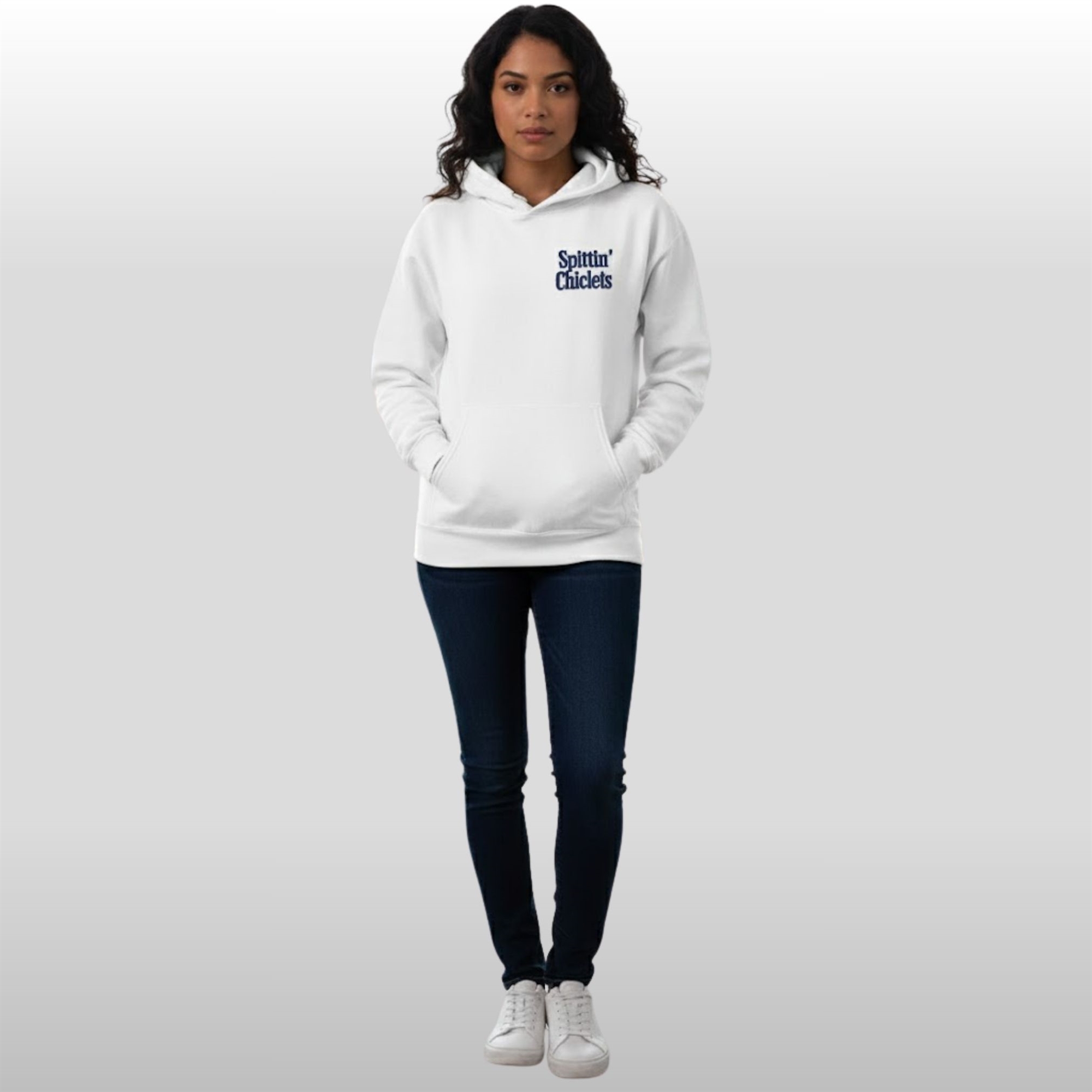 Designed for the fan who appreciates the finer things—like a perfectly taped twig or a cold Pink Whitney—this hoodie features the iconic “Spittin’ Chiclets” wordmark in a clean, minimalist design on the chest. It’s the perfect blend of understated style and maximum hockey culture impact.