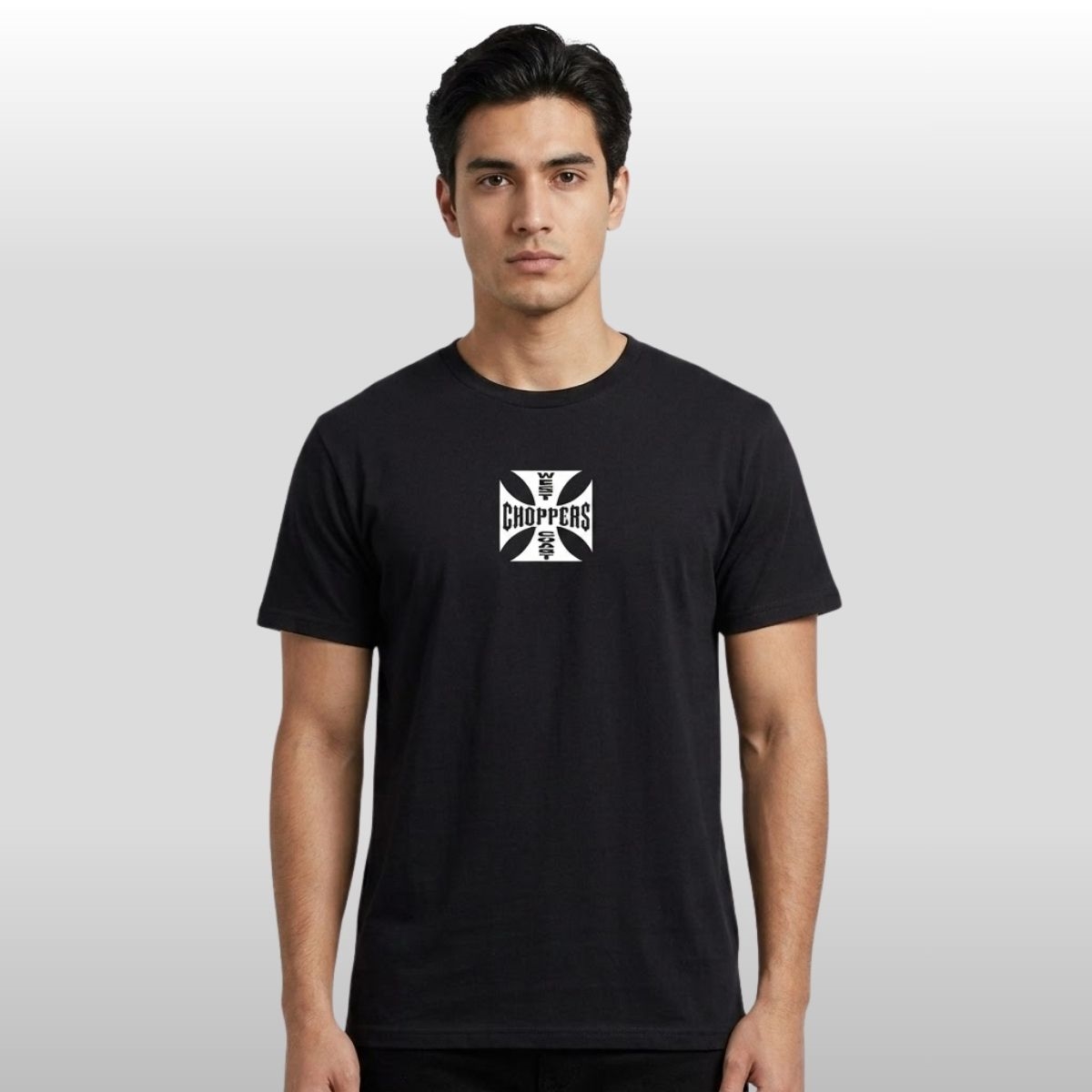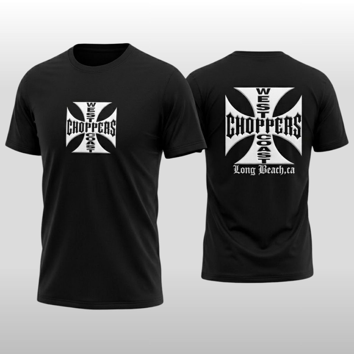 The design of this Paul Walker West Coast Choppers Shirt is a masterclass in monochrome rebellion. Featuring a stark black base, the shirt showcases the iconic Iron Cross logo, a hallmark of the legendary custom shop. The word “CHOPPERS” is printed horizontally in a bold, gothic-style typeface across the center of the cross. Vertically, the “WEST COAST” lettering anchors the design, while the “Long Beach, CA” script sits proudly at the base, marking the geographic heart of this culture. The print is deliberate and rugged, mirroring the hand-built nature of the machines it represents.