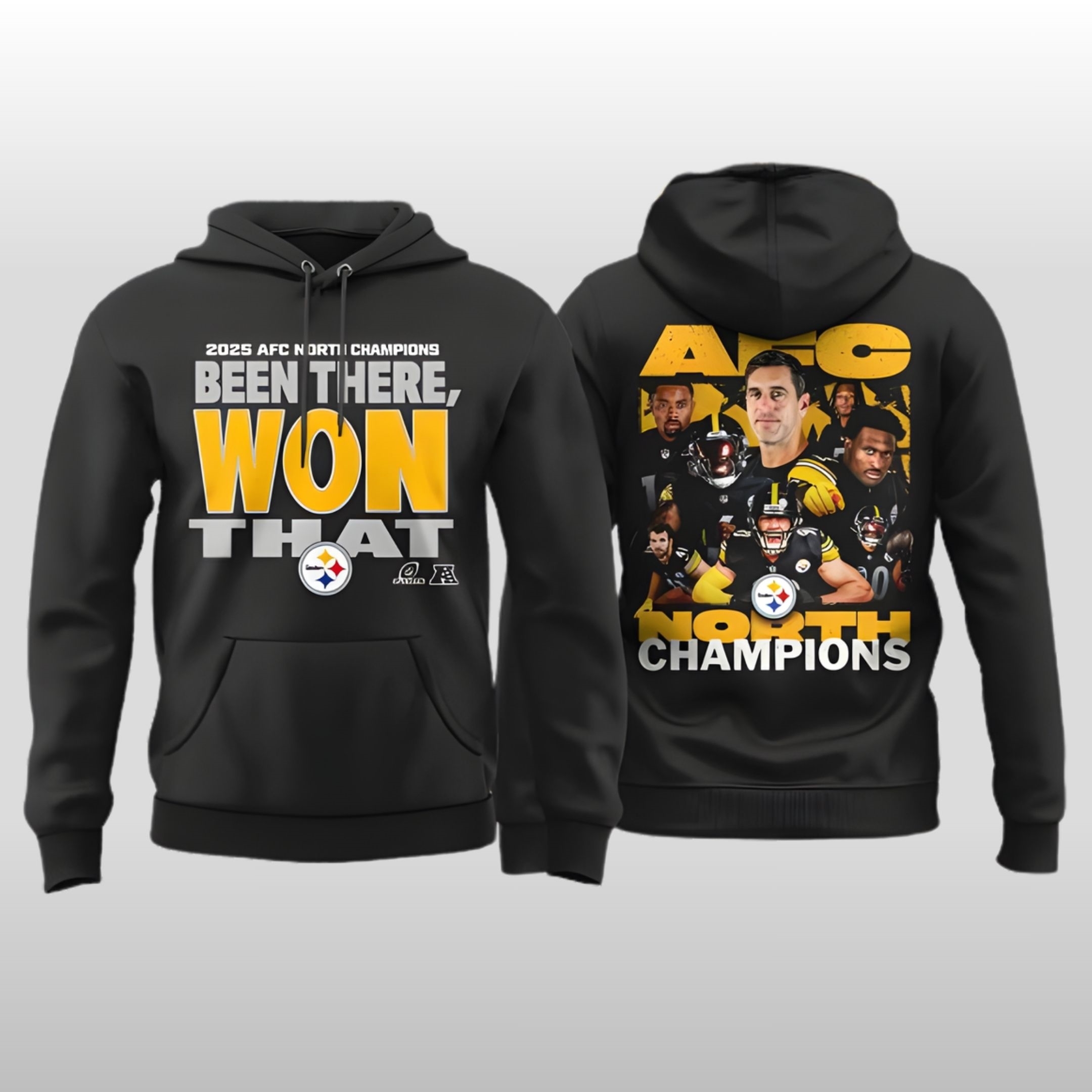 The 2025 season proved once again that while rivals might have “potential,” the Steelers have “history.” This hoodie immortalizes the latest division title with a bold, unapologetic design. The front features the official “2025 AFC North Champions” lettering paired with the viral slogan “BEEN THERE, WON THAT.” The typography, rendered in iconic Steelers Gold and Silver, sits alongside the legendary hypocycloids. It’s a design that speaks to the “Standard” established by the Rooney family—a reminder that winning isn’t a surprise in Pittsburgh; it’s the expectation.