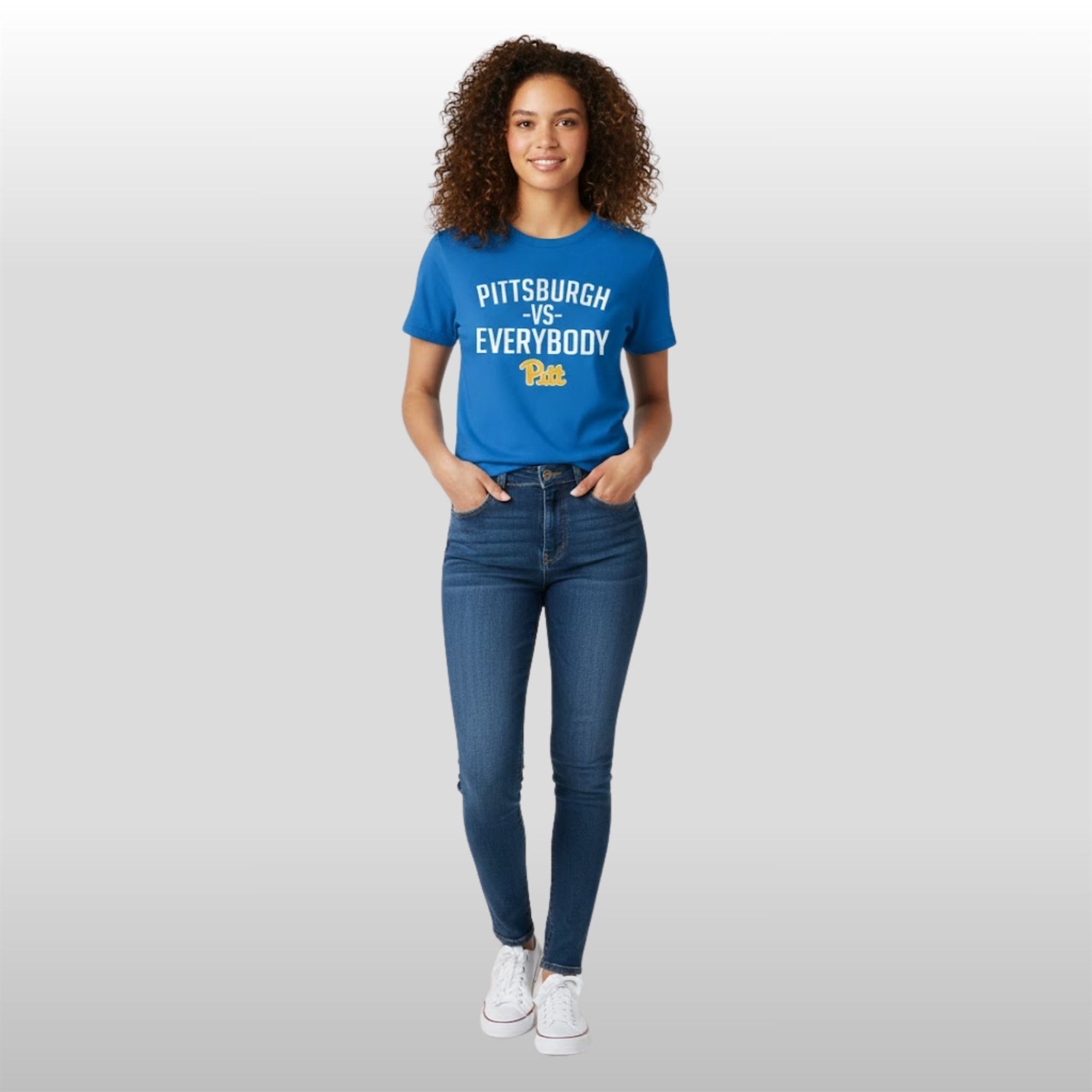 Whether you’re cheering from the North Shore, waving a Terrible Towel, or representing the Pitt Panthers, this design unites every corner of the city. Featuring the iconic “Pittsburgh Vs Everybody” slogan paired with the classic Pitt logo, this shirt bridges the gap between professional intensity and collegiate pride. It is the ultimate apparel for the fan who knows that being from Pittsburgh means never backing down.