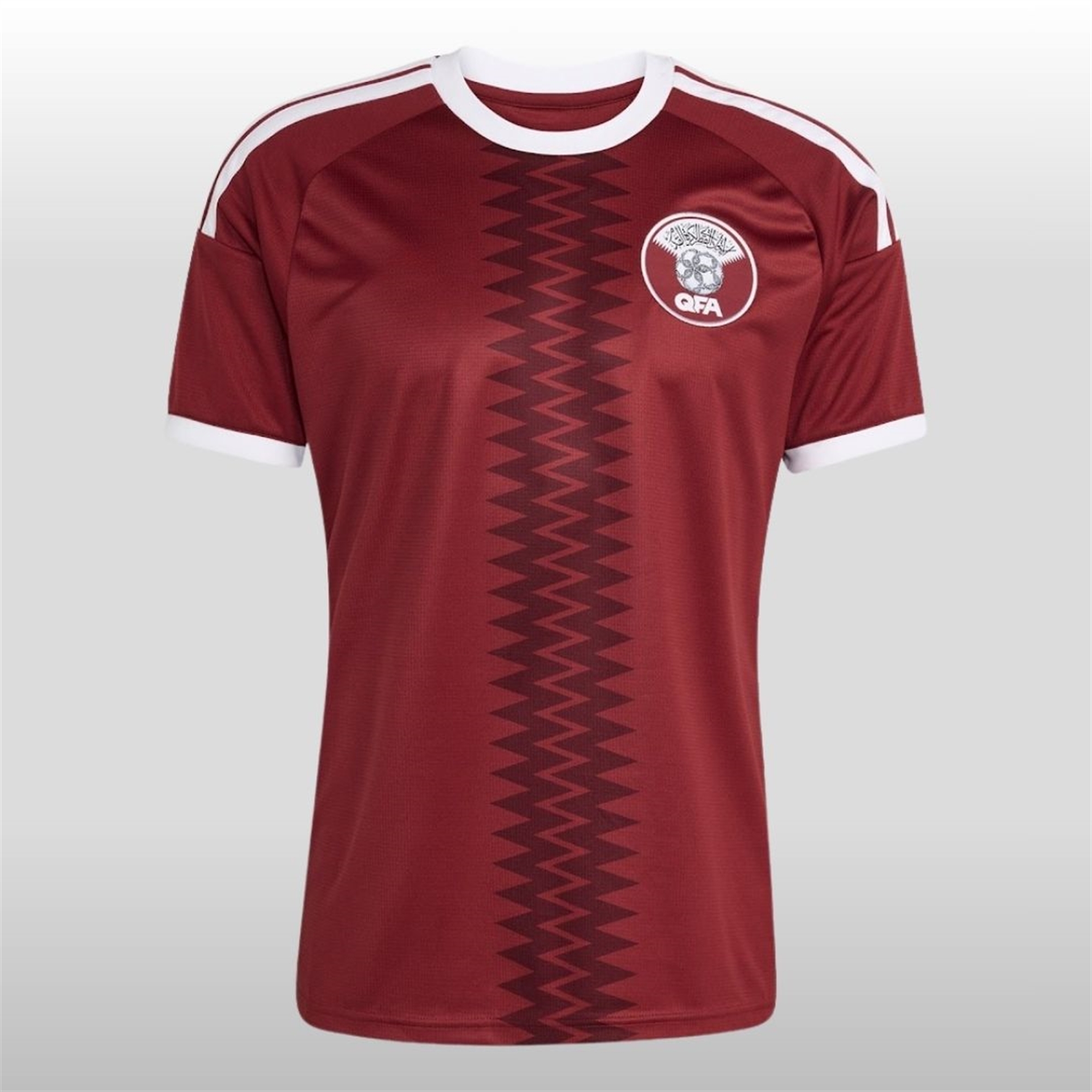 Capture the spirit of international competition with this striking design. The Qatar 2026 World Cup Jersey features the nation’s iconic deep maroon color, a symbol of their rich heritage. The shirt is highlighted by white trim on the collar and cuffs, along with classic white shoulder stripes, creating a sharp, vintage-inspired look. A prominent zig-zag graphic runs vertically down the center, adding a dynamic and unique texture. The national team’s distinctive crest is proudly displayed on the chest, signifying national pride and competitive spirit.