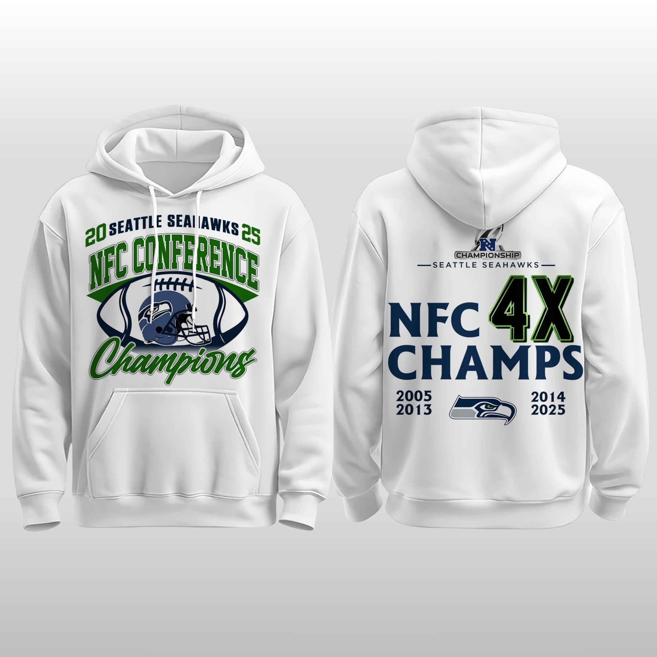 Celebrate a legacy of dominance with the Seattle Seahawks NFC Conference Champions 4X Hoodie Shirt. Designed for the 12s who have ridden the highs of every title run, this apparel is more than just a layer—it’s a visual timeline of a West Coast powerhouse.