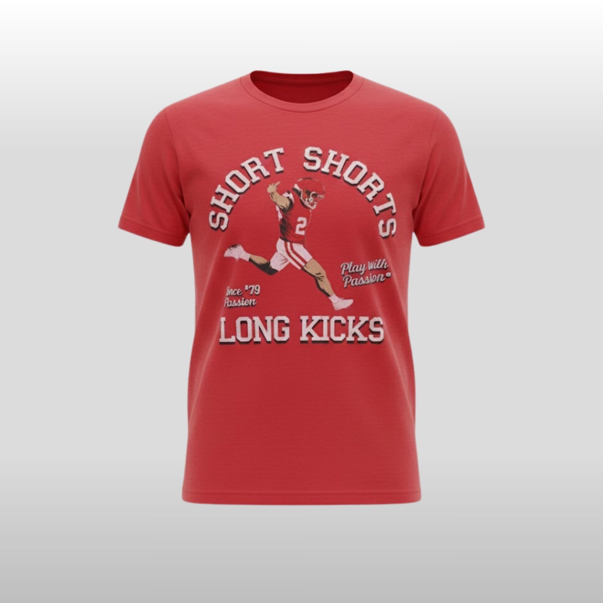 Celebrate a legacy of athletic excellence with the Short Shorts Long Kicks Since ’79 Play With Passion Shirt. This premium tee features a dynamic vintage-inspired graphic of a legendary kicker in mid-motion, capturing the raw energy of the game’s most clutch moments. The design is anchored by bold, varsity-style typography and the iconic “Since ’79” stamp, serving as a tribute to the era that defined “short shorts” and massive field goals.