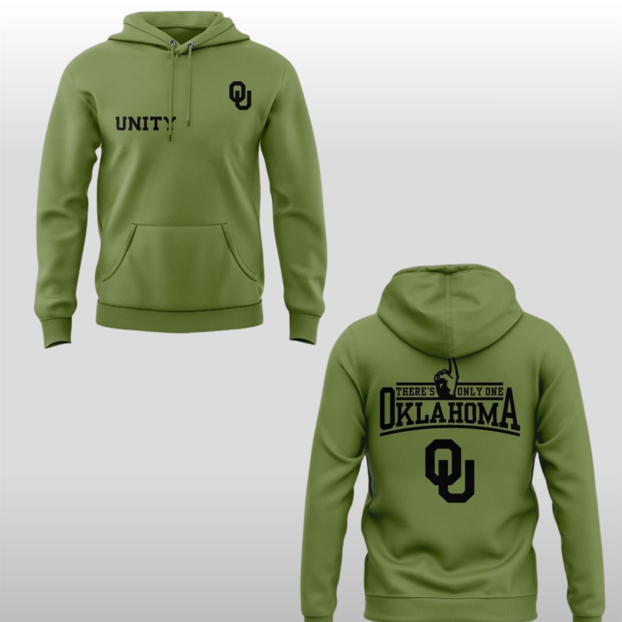 Elevate your game-day wardrobe or casual look with the Sooners There’s Only One Oklahoma 2025 Hoodie. This must-have item for every dedicated fan is crafted in a distinctive olive green hue, symbolizing strength and resilience. The front features the word “UNITY” alongside the iconic OU logo in a striking black print, signifying the collective power of the Sooner Nation.