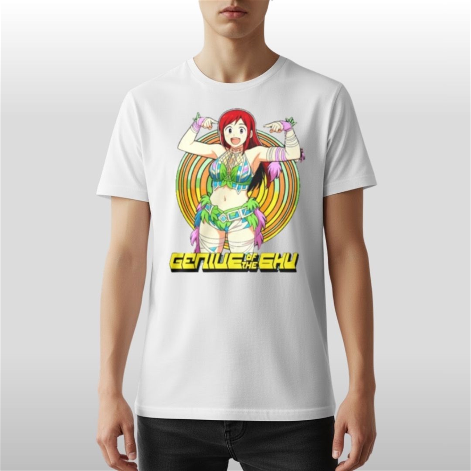 Dive into the vibrant intersection of sports fandom with the Tyrese Haliburton Wear Genius Of The Shu Iyo Sky Shirt. This exclusive Tyrese Haliburton Iyo Sky Anime Themed T-Shirt features a stunning, colorful anime-style graphic of the “Genius of the Sky” herself, Iyo Sky, flexing with the bold “GENIUS OF THE SKY!” text prominently displayed beneath a dynamic, swirling background.
