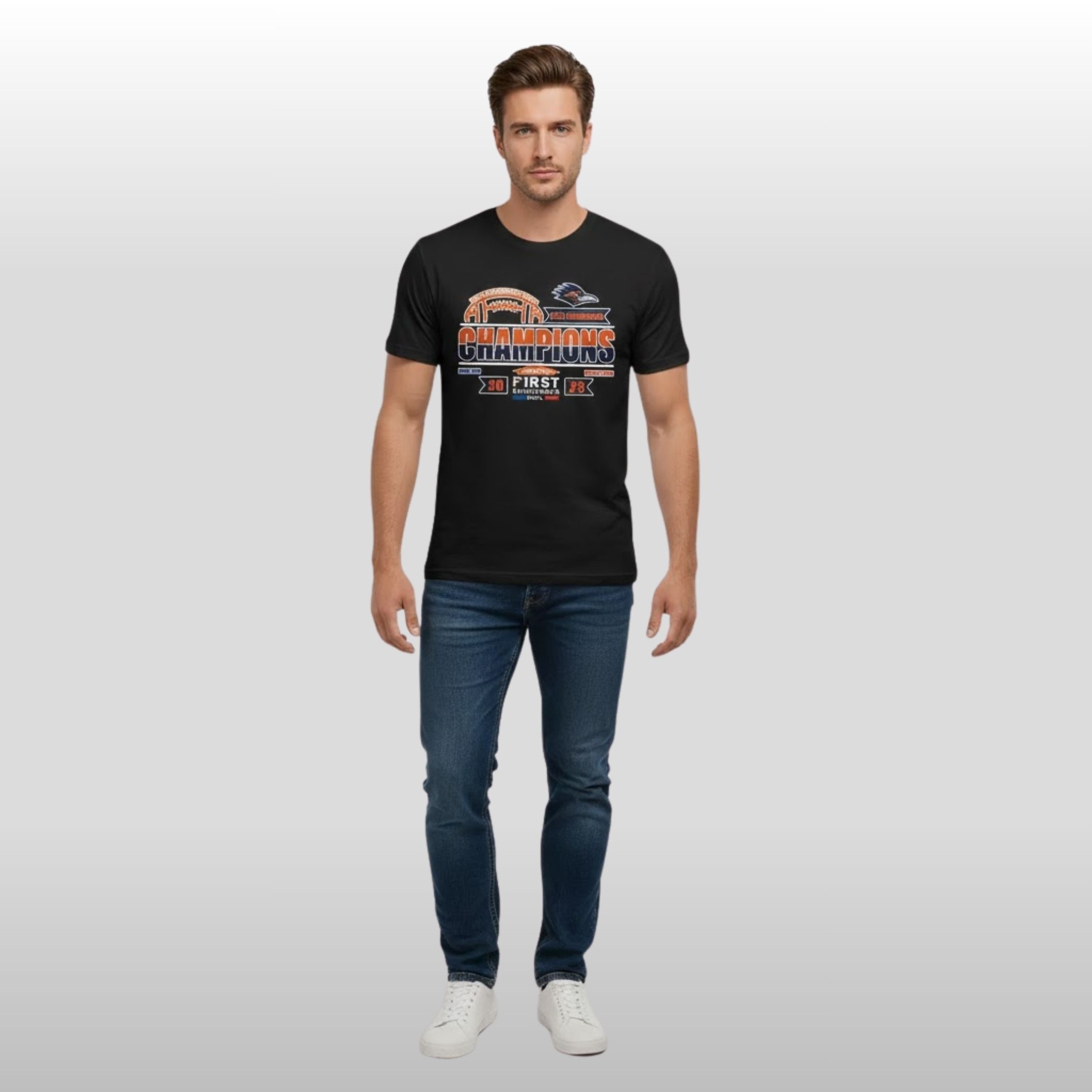 The Roadrunners have officially solidified their place in the history books with a dominant performance in Detroit. This UTSA Football 2025 First Responder Bowl Champs Shirt is the ultimate collector’s item for fans who want to relive the grit, the touchdowns, and the final whistle. Featuring a bold black canvas, the front of the shirt showcases a vibrant, high-contrast graphic including the iconic “CHAMPIONS” typography in orange and white.