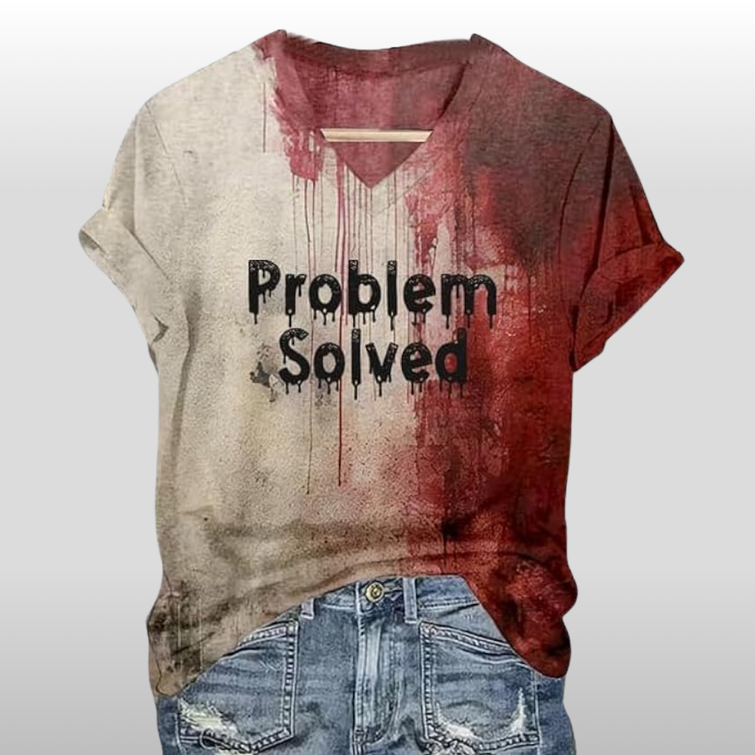 The Vail School District Problem Solved Bloody Shirt is not just apparel; it’s a powerful, tangible symbol of moral clarity in the face of shocking indifference. Clearly visible across the front are the words “Problem Solved,” a chilling echo of the callous message worn by those Vail School District employees in Tucson, Arizona. Running down the left side, a vivid, striking design simulates a trail of blood, directly referencing the offensive shirts worn to mock a brutal murder.
