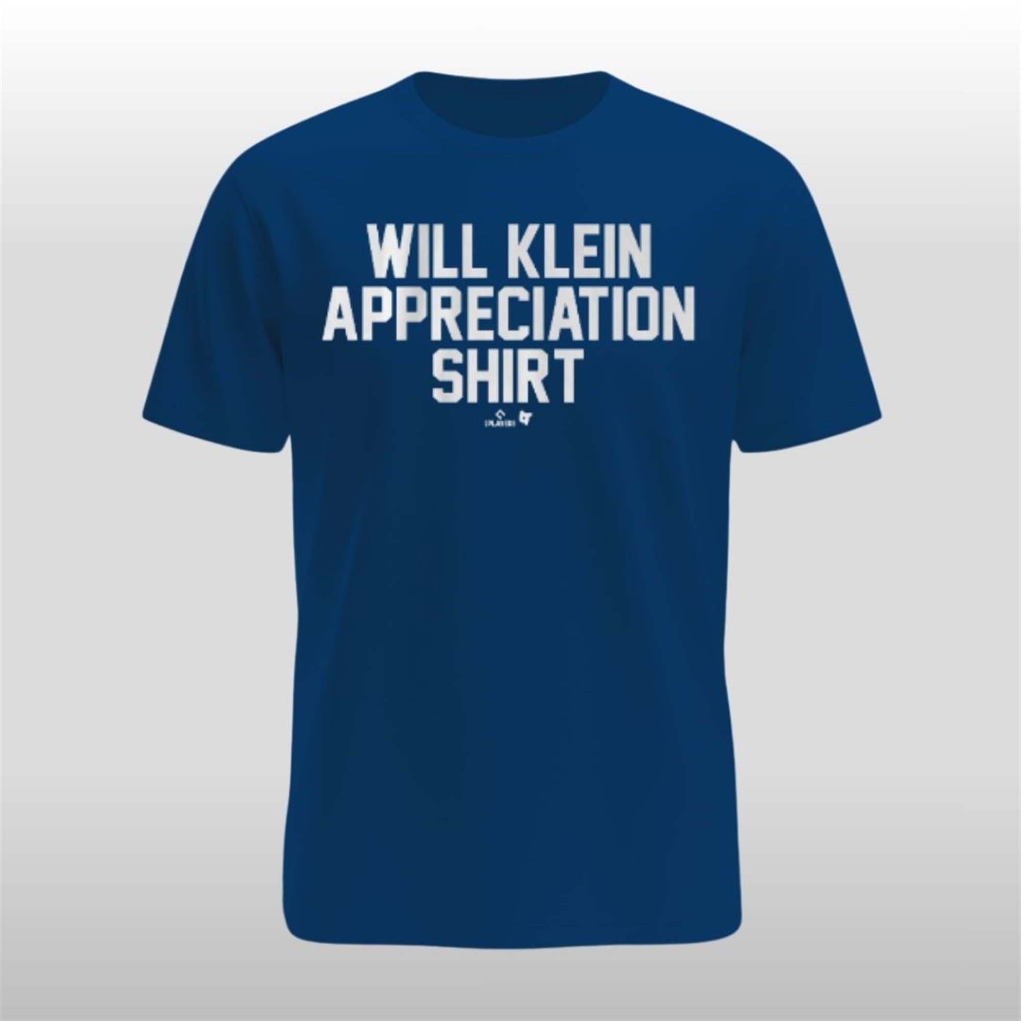 Capture the spirit of that defining baseball moment with the Will Klein Appreciation Shirt. This striking, deep navy blue tee features the bold, white text “WILL KLEIN APPRECIATION SHIRT” emblazoned across the chest. It is a premium quality garment, designed for comfort and durability, making it perfect for game day, the stadium, or everyday casual wear. The design is clean, powerful, and instantly recognizable to those who witnessed his incredible resolve. It is a symbol of admiration for the player who stepped up in the most demanding situation.