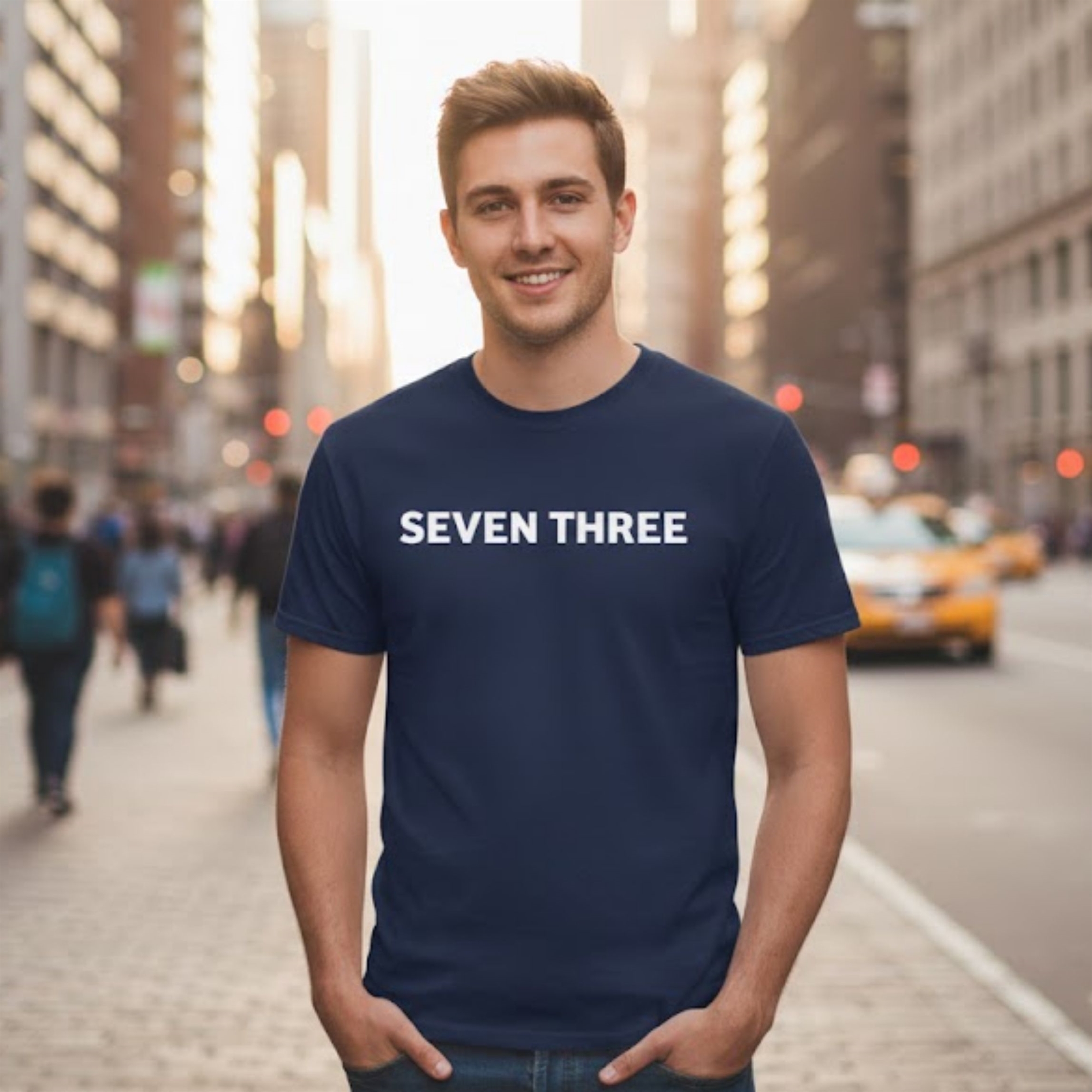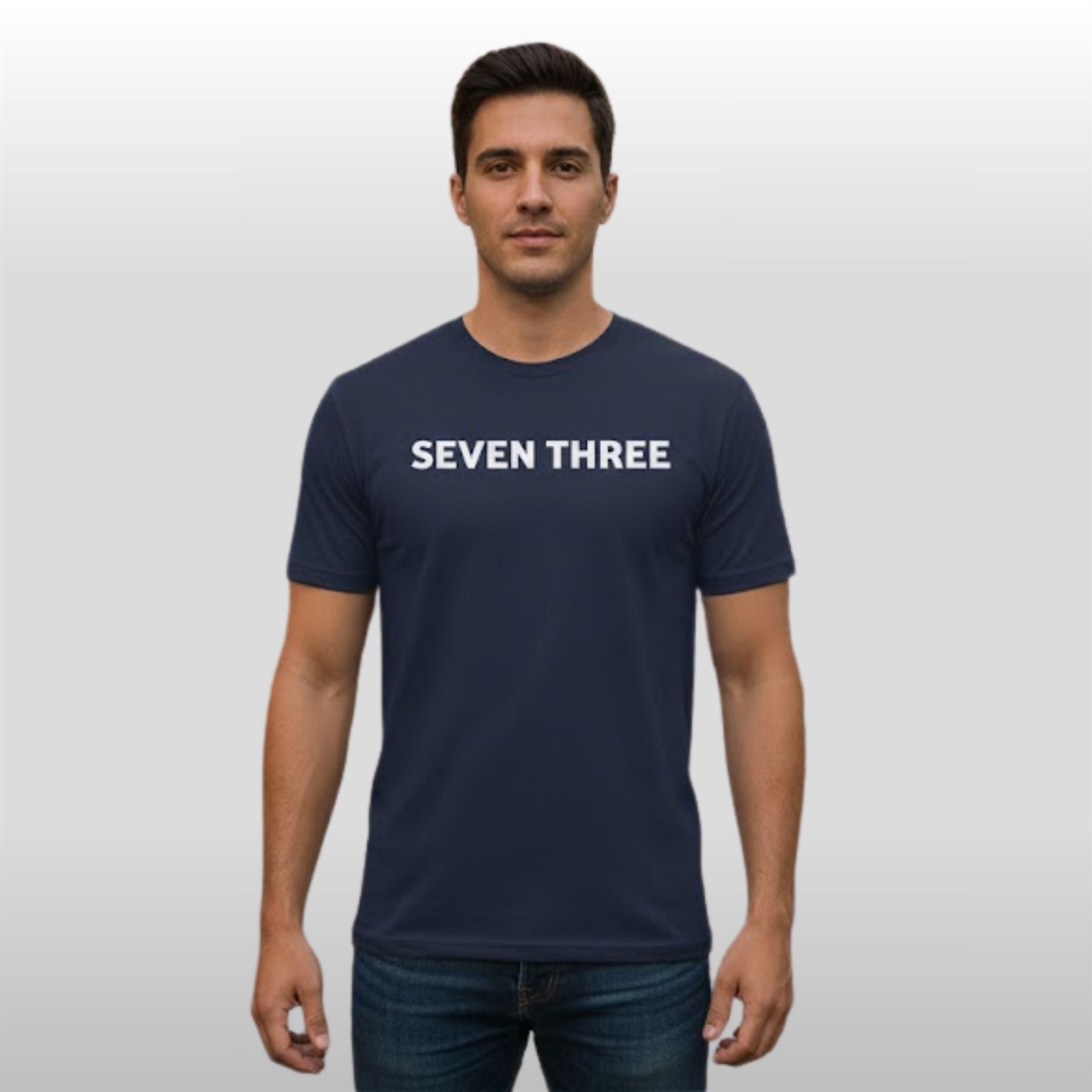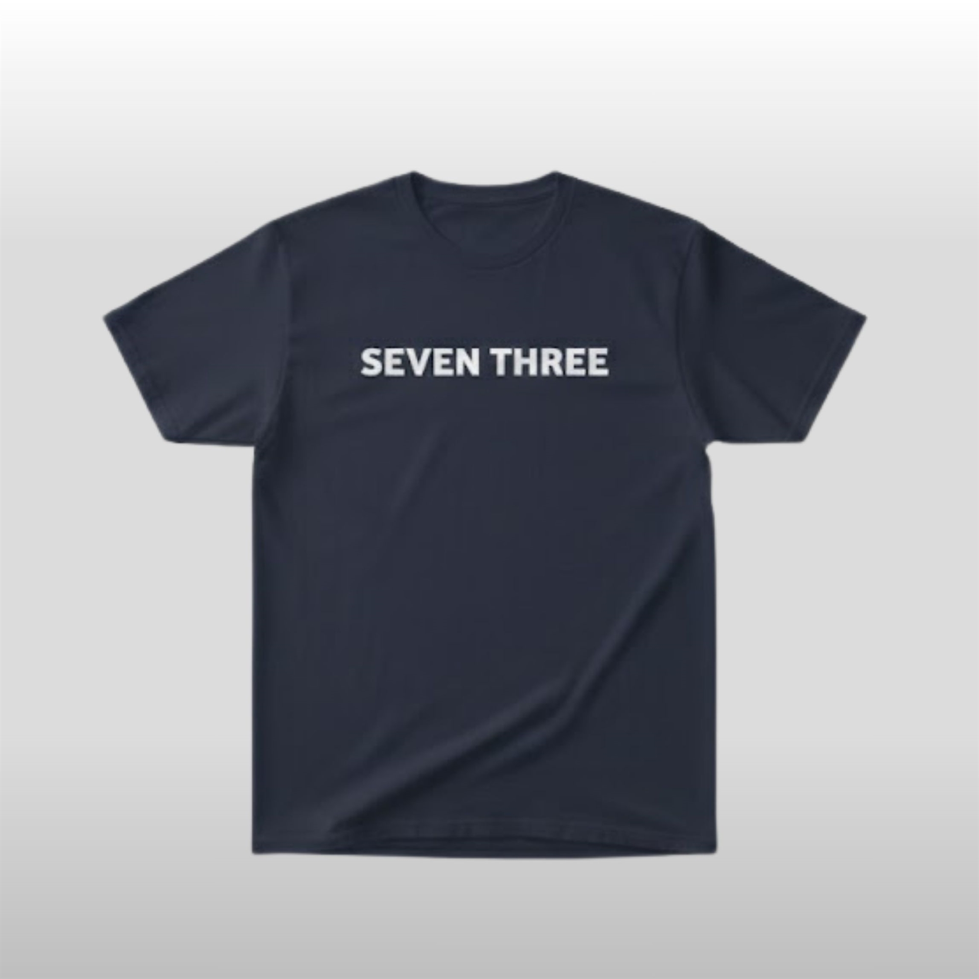 The design is centered on the cryptic yet impactful “SEVEN THREE” text, rendered in a crisp, white sans-serif font that cuts through the deep navy base. This minimalist approach allows the message to take center stage without distraction. It’s more than just a piece of clothing; it’s a wearable nod to a specific community and a shared set of values, blending a sense of mystery with undeniable confidence.